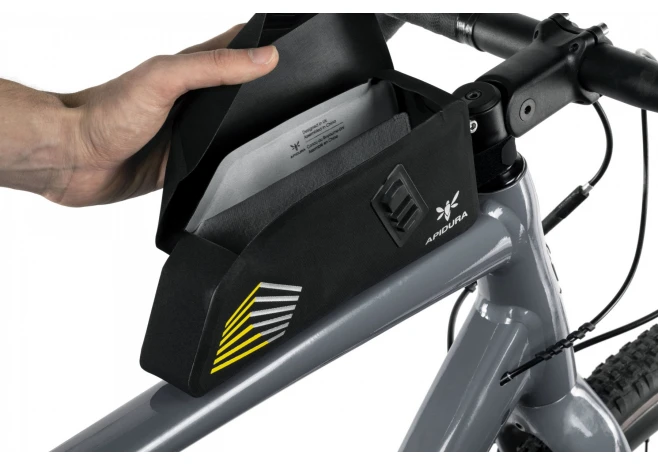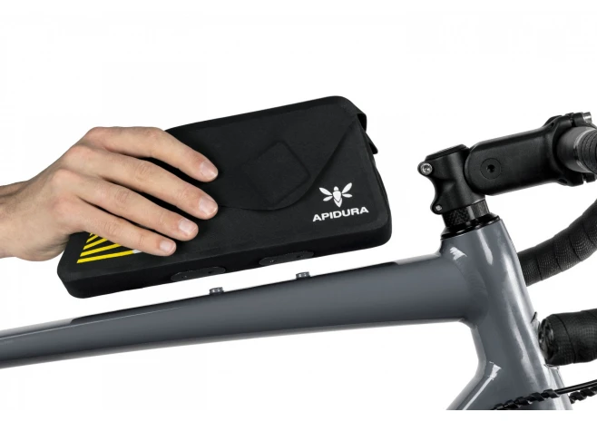 Avec une ouverture à rabat magnétique à accès rapide, ce sac étanche est idéal pour ranger les batteries, les téléphones portables et les accessoires de course. Construit à partir d’une matière stratifiée ultralégère et étanche développé pour Apidura, le pack se fixe solidement aux inserts sur le tube supérieur sur les vélos de gravel et d’aventure.